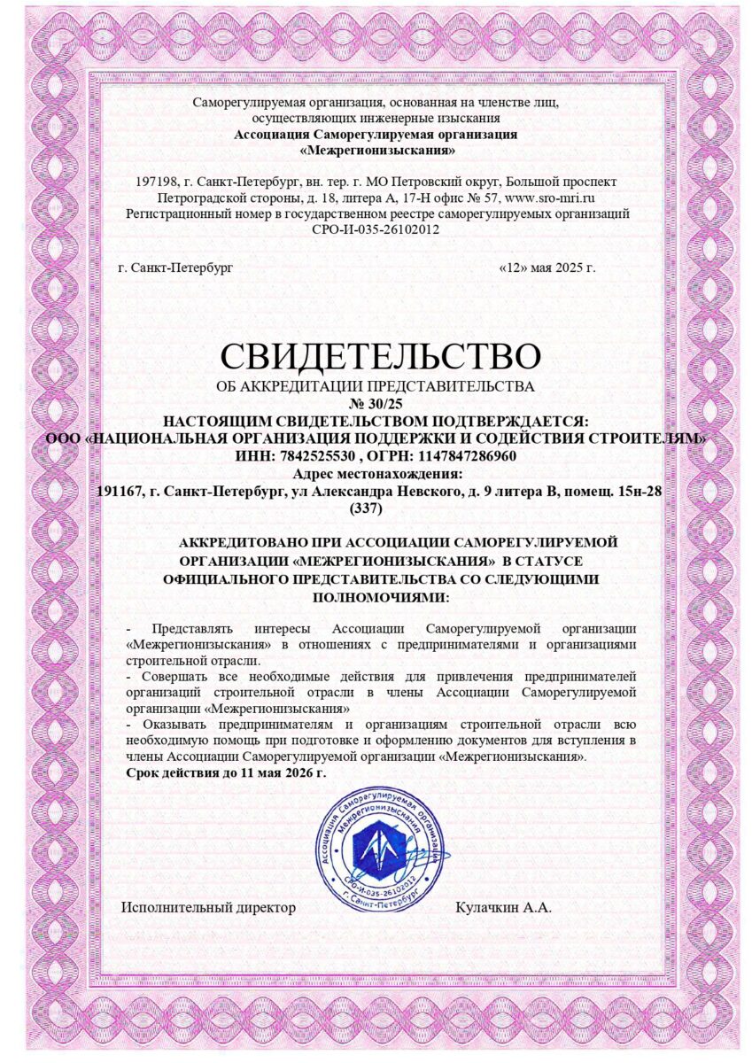 Если ваша организация не имеет допуска СРО изысканий и по этой причине срывается крупный контракт, обращайтесь в компанию «НОПСС». Мы подберём надёжную действующую СРО, поможем подготовить и подать пакет документов. Гарантируем услуги высокопрофессиональных профильных специалистов, юридическое сопровождение не только на период вступления, но и в дальнейшем.